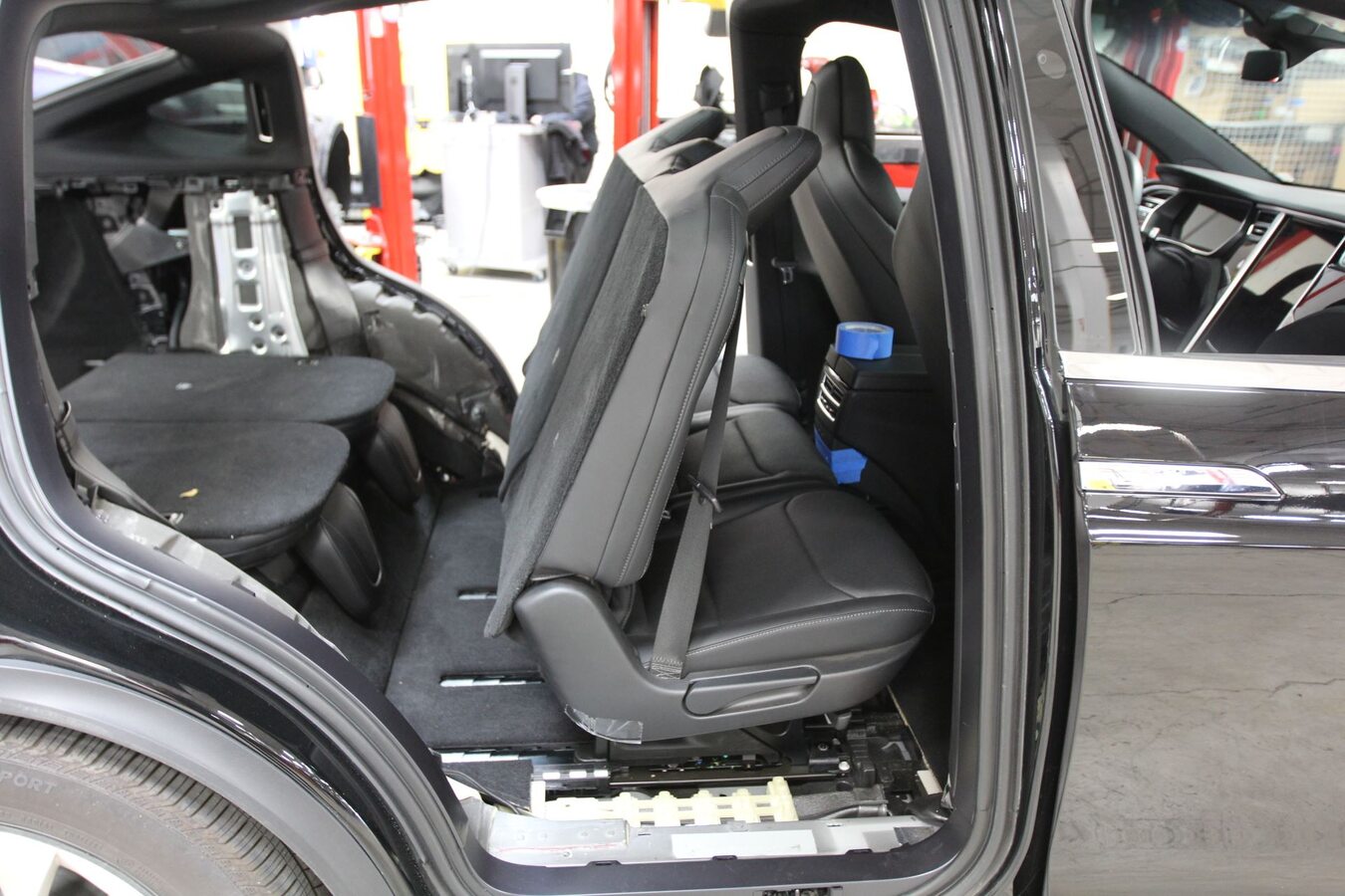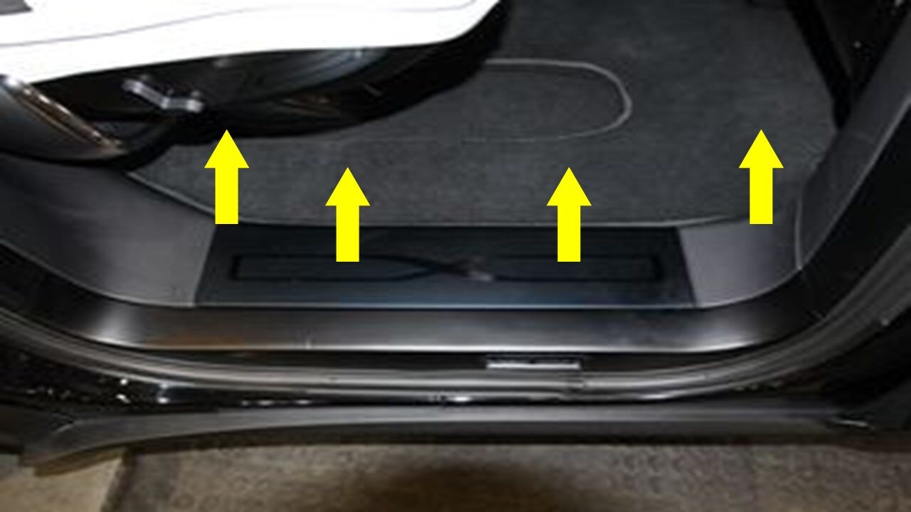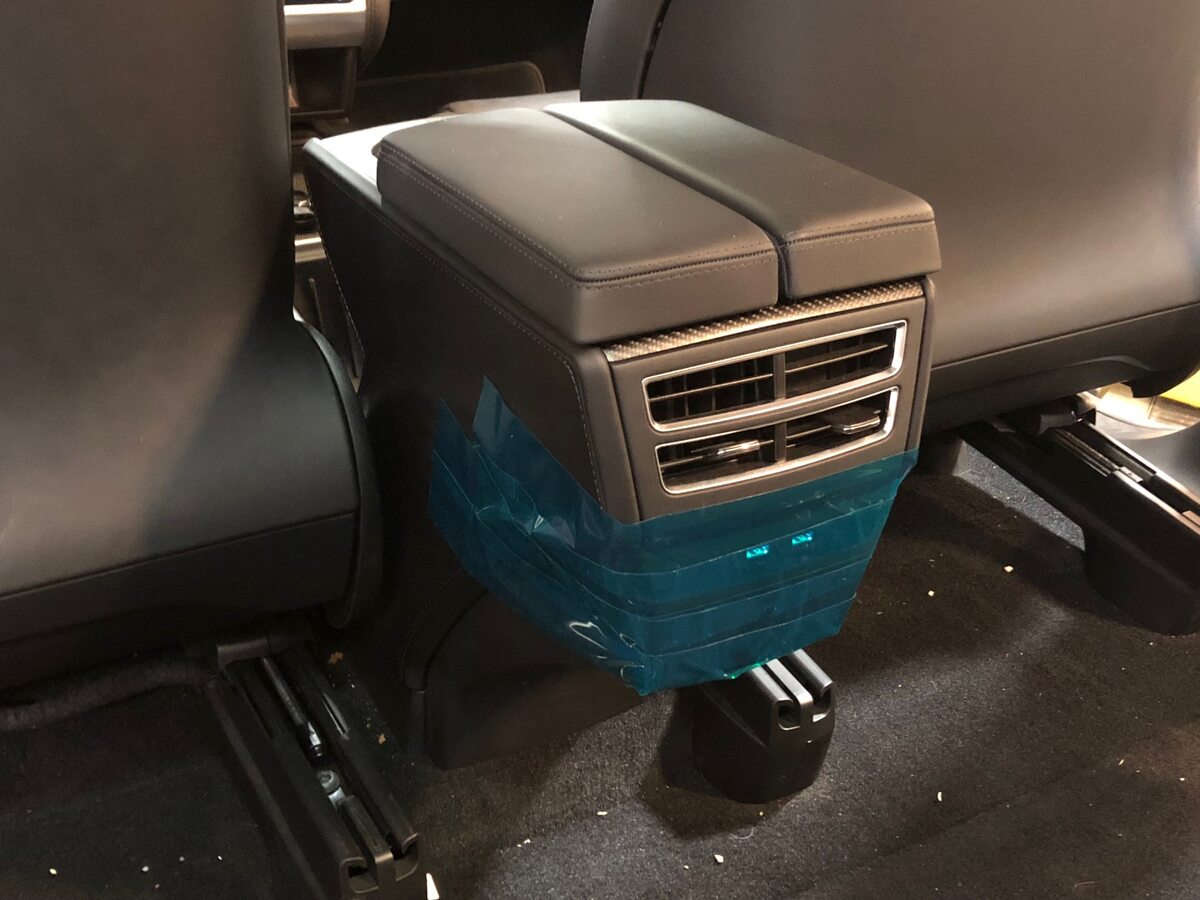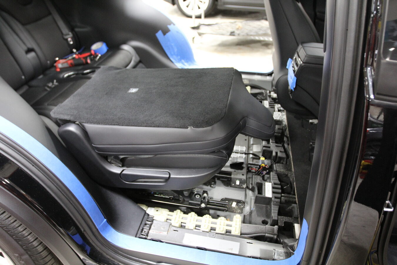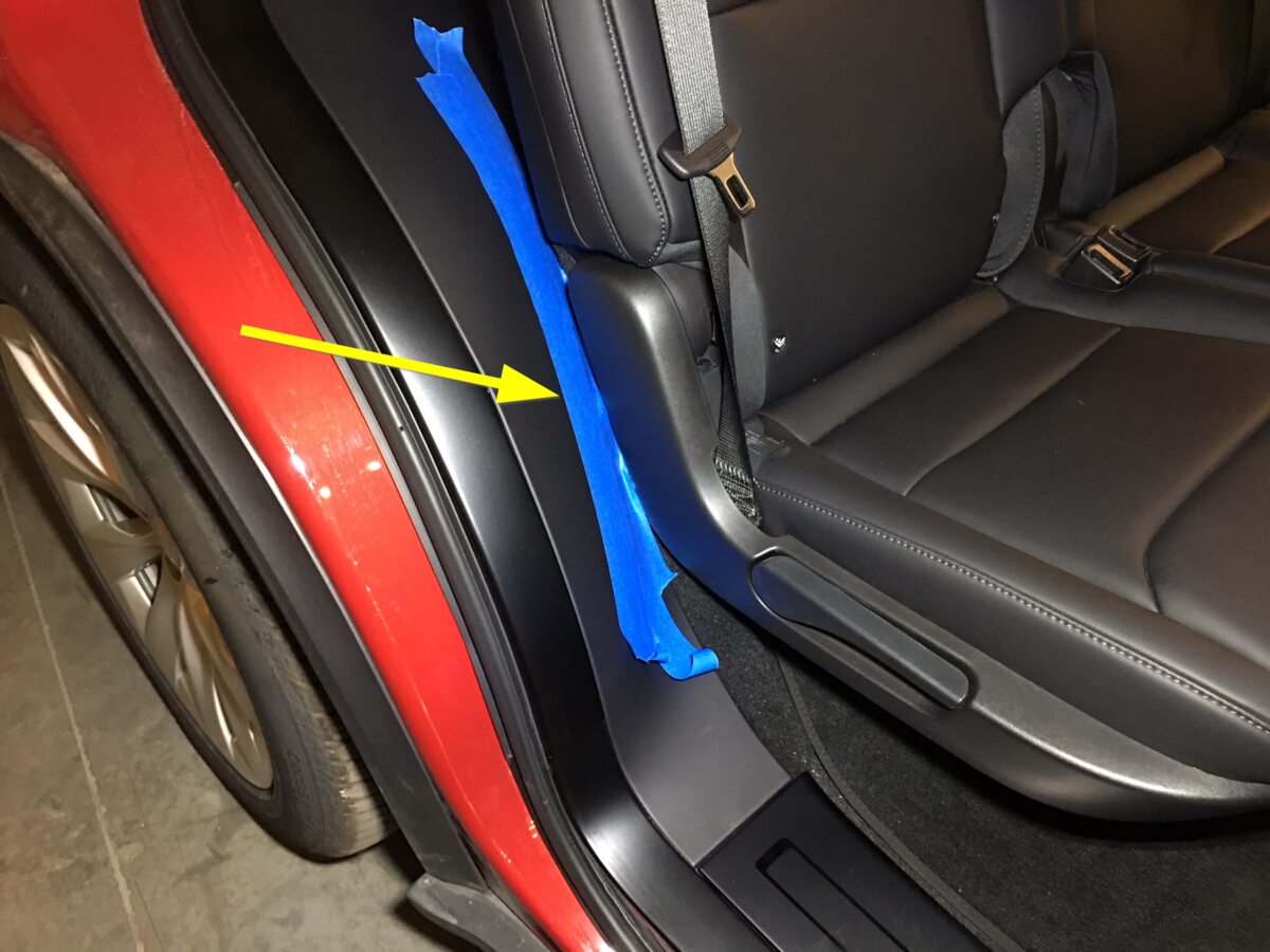 - Tape the RH lower C-pillar area around the 2nd row seat side trim area