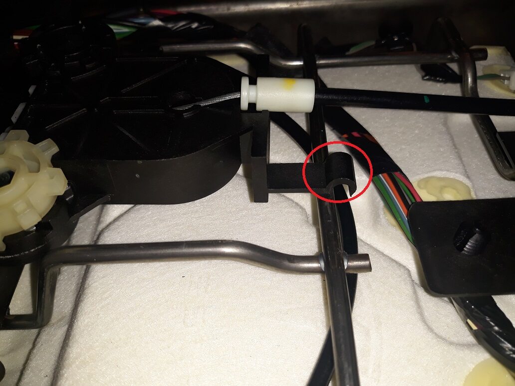 - Apply tape to the LH racetrack to avoid damage.