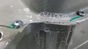 - If liquid leak detector was applied to any top cover surfaces (steps 8–12 of the “Leak Troubleshooting and Repairs” section of this document), use alcohol wipes to clean the top cover near the battery blanket attachment surfaces very thoroughly. Liquid leak detector leaves a residue on the surface that can reduce the adhesion of the butyl rubber adhesive on the battery blanket.