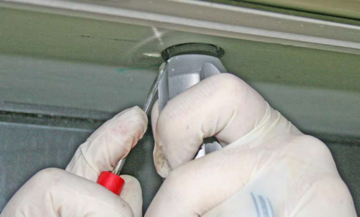 Use a pick or small screwdriver to remove the cap and gore breather from