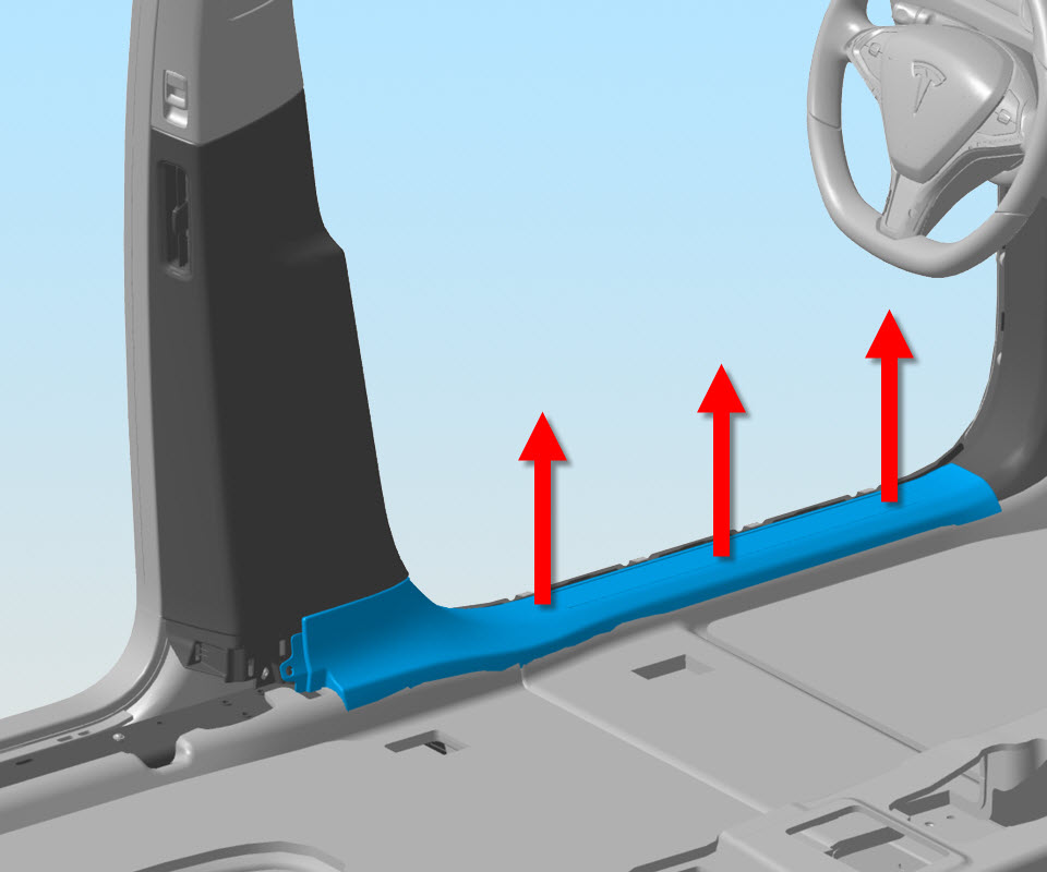 - Pull up on the front sill panel to release the clips that secure it to the sill.