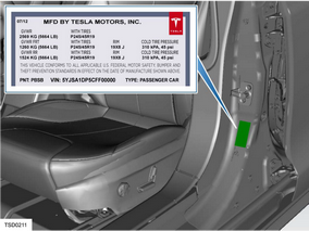 Manufacturing certification label A manufacturing certification label is affixed to the driver’s side door jamb, except for vehicles in China, where it is affixed to the passenger's side door jamb. Parent topic: IDENTIFICATION NUMBERS