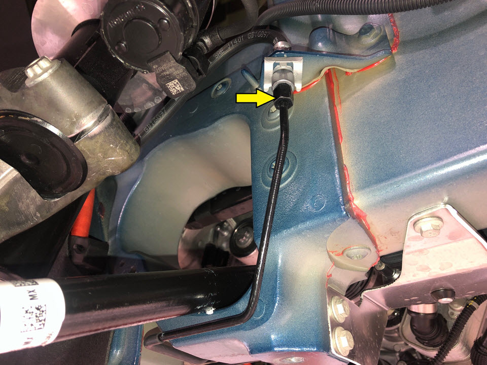 - Disconnect the nuts (x2) that attach the tube brake line bundle at the LH front wheel arch (torque 16 Nm).