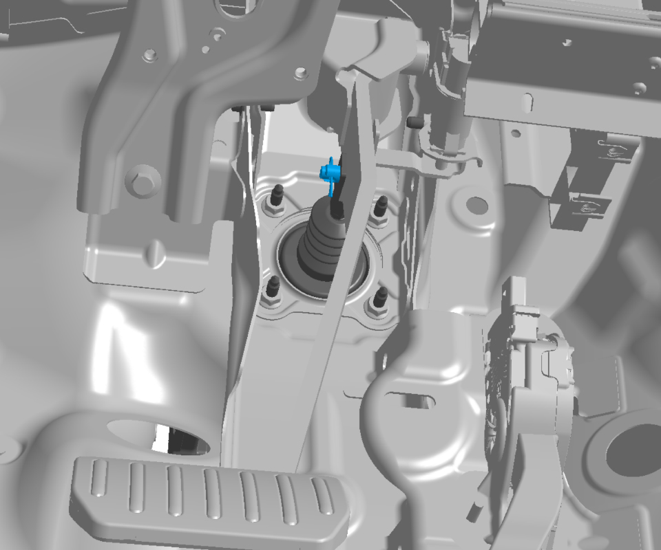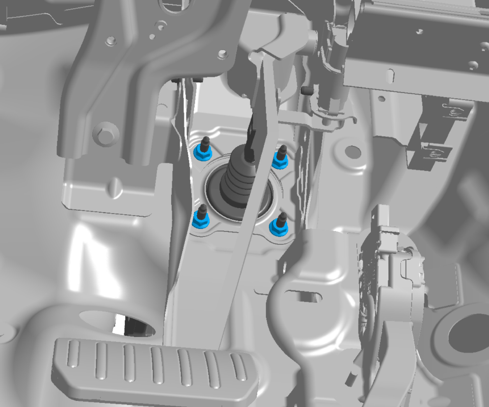 - Remove the nuts (x4) that attach the electromechanical brake booster to the bulkhead (torque 23 Nm).