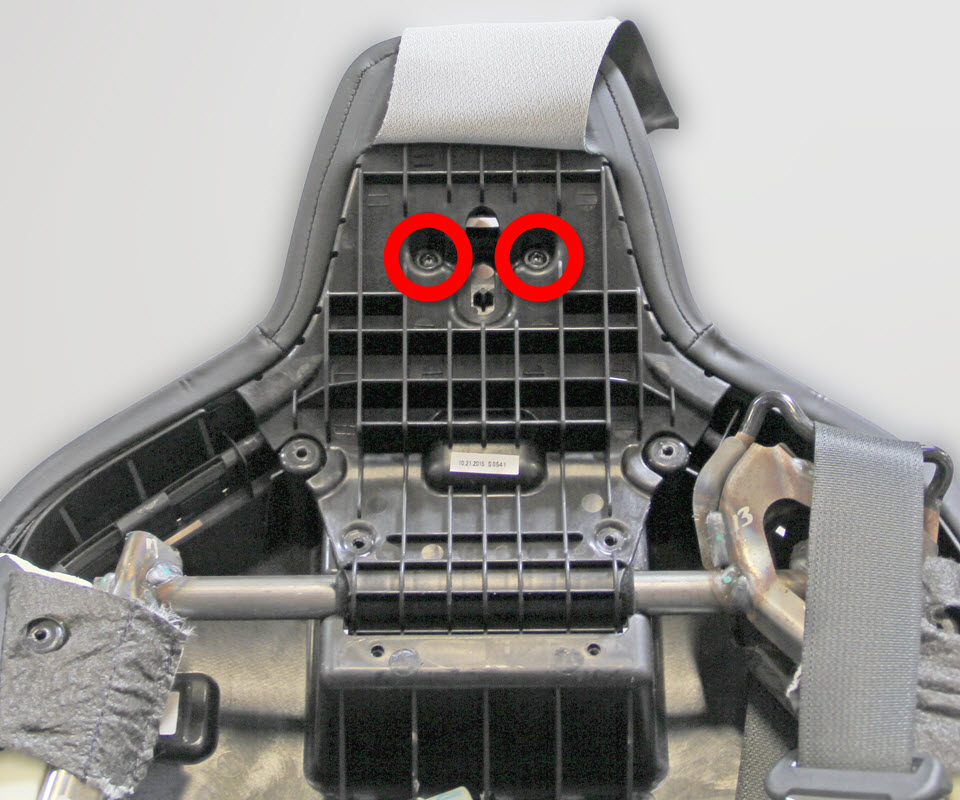 - Remove the lower fasteners that secure the headrest bracket.