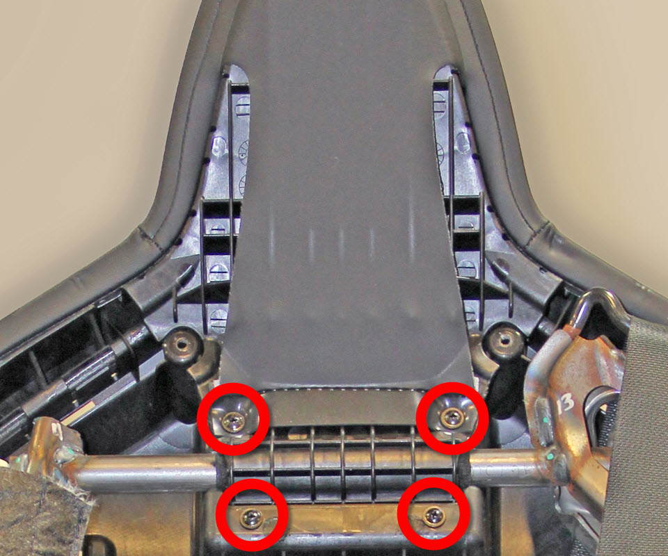 - Remove the screws that secure the plastic trim to the bottom of the seat frame.