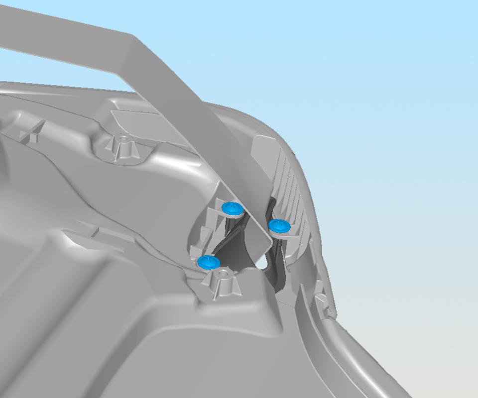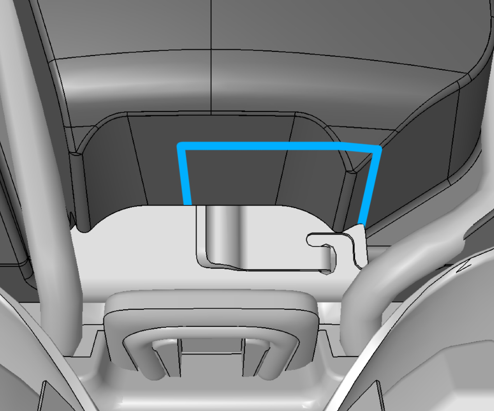 - Release the 4 tabs that secure the lower seat belt bezel to the seat bottom cushion.