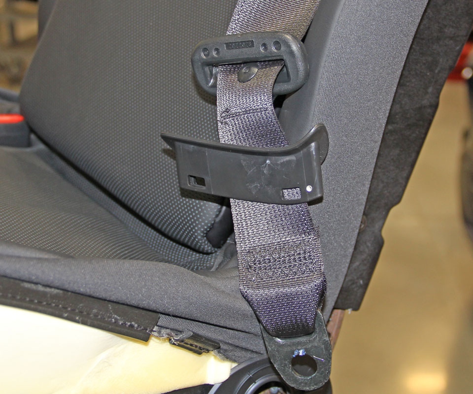- Pull the seat belt out through the rear of the seat back.