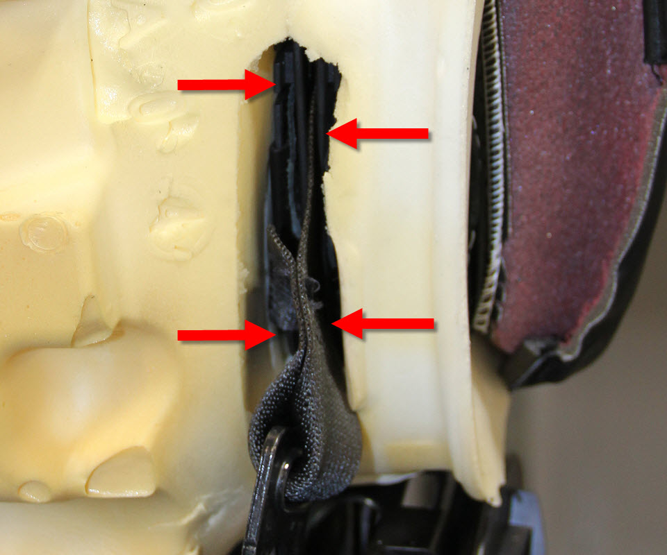 NoteThis allows the seat back to flex enough to allow the bolt that secures the seat belt retractor to be removed in a later step.