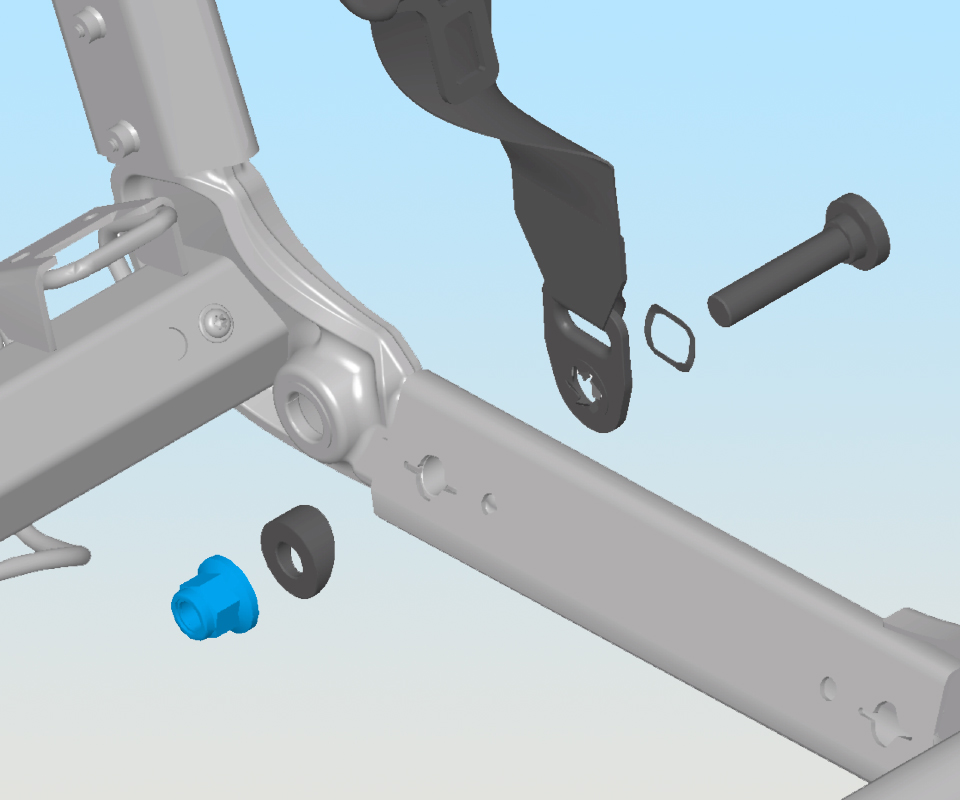 and nut that secure the seat belt anchor to the seat frame (torque 45