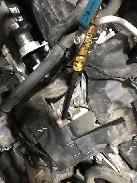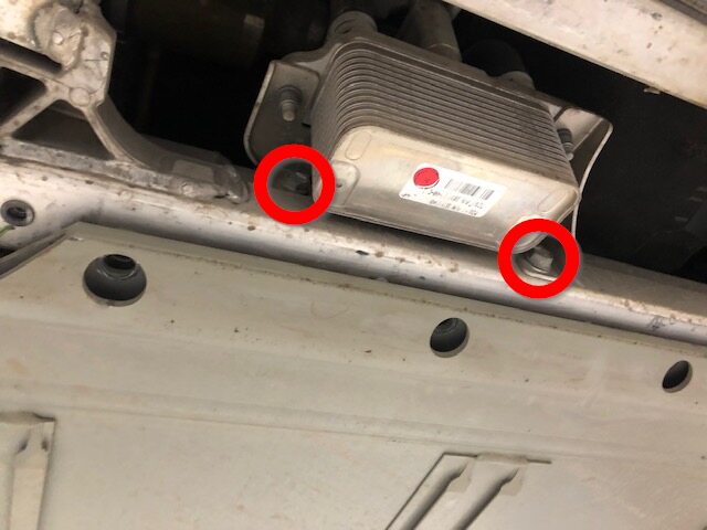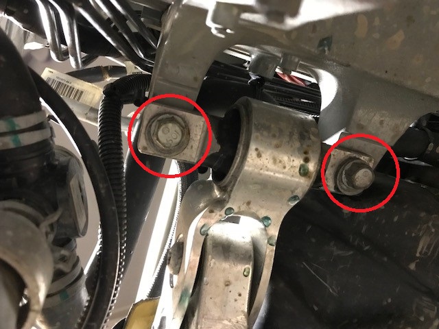 - Reinstall the bolts (x2) that attach the chiller to the subframe (torque 12 Nm)