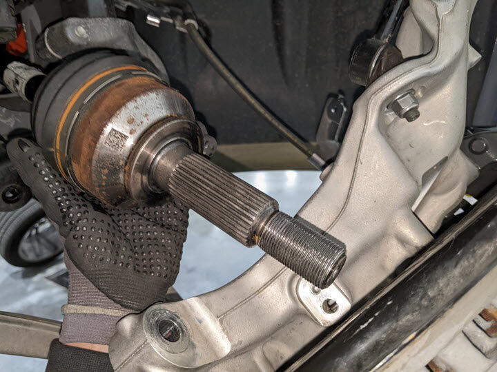 - Use the hub puller to free the LH halfshaft from the hub splines.