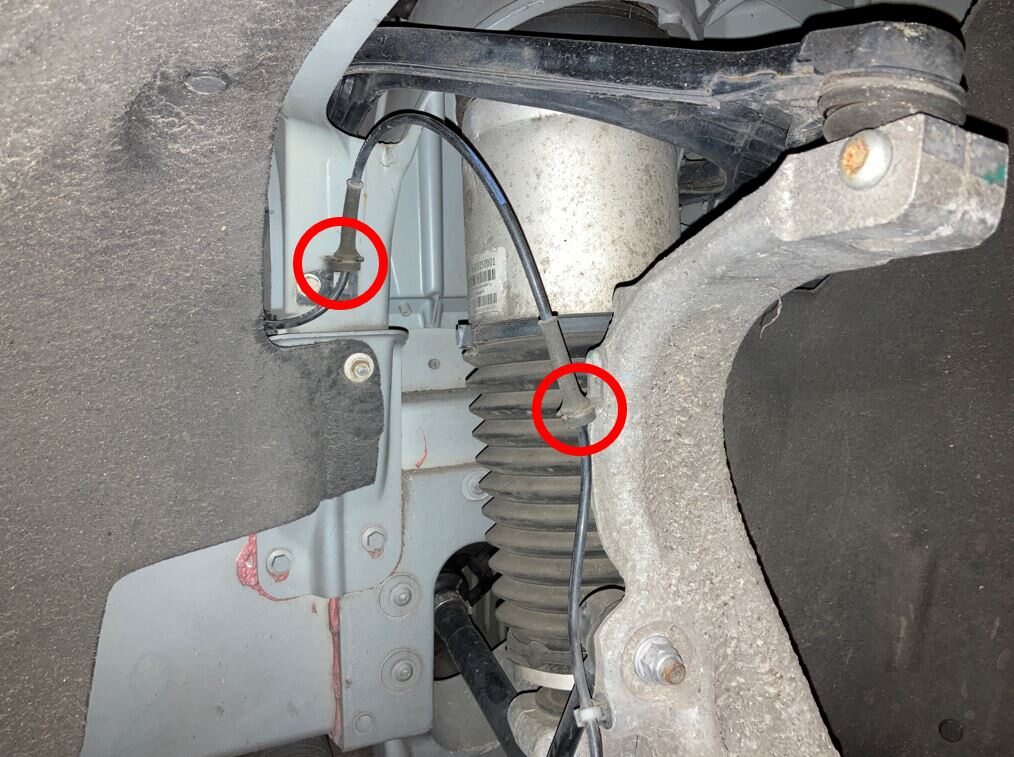 - Install the bolts (x2) that attach the skid plate to the front subframe (torque 9 Nm).