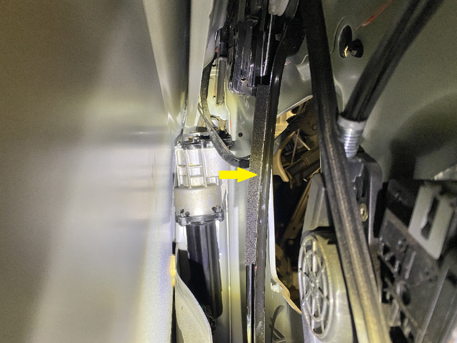 - Cut 150 mm (6 in) of foam tape, and then apply the foam tape to the inside of the LH front window regulator.