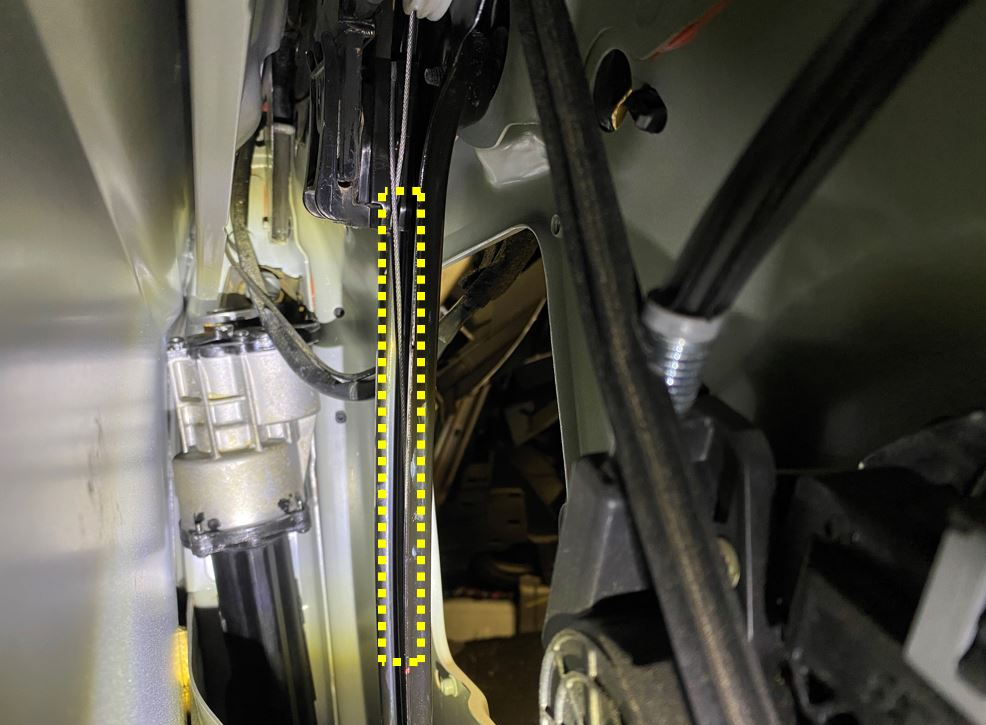 - Release the two nuts that attach the glass run channel to the door (torque 10 Nm).