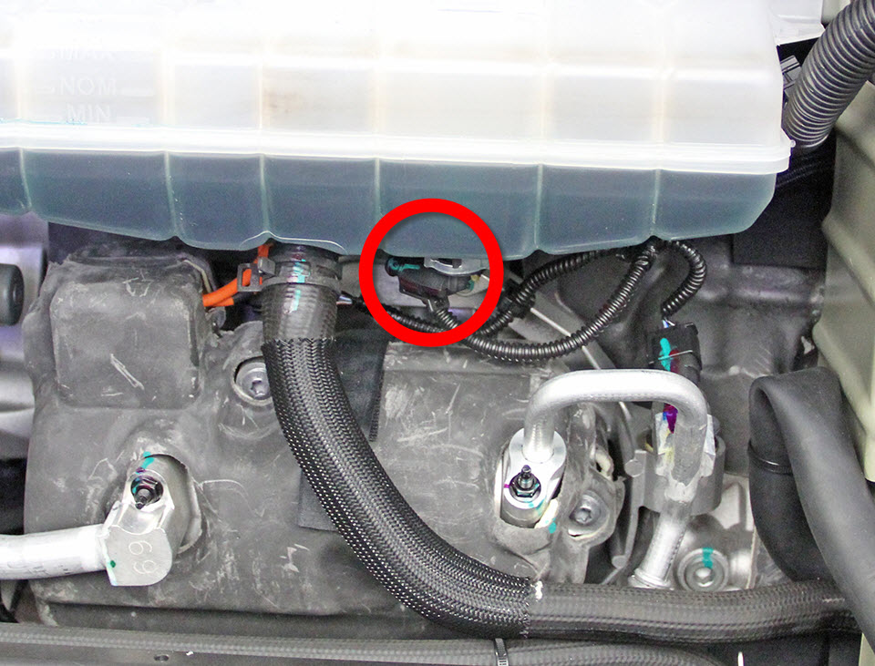 - Disconnect the compressor HV harness from the forward junction box.