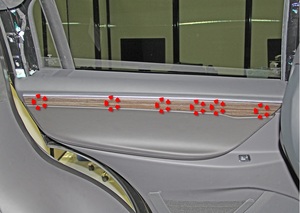 Note17x clips, Align strut cover first, 1x connector may be present on early production vehicles