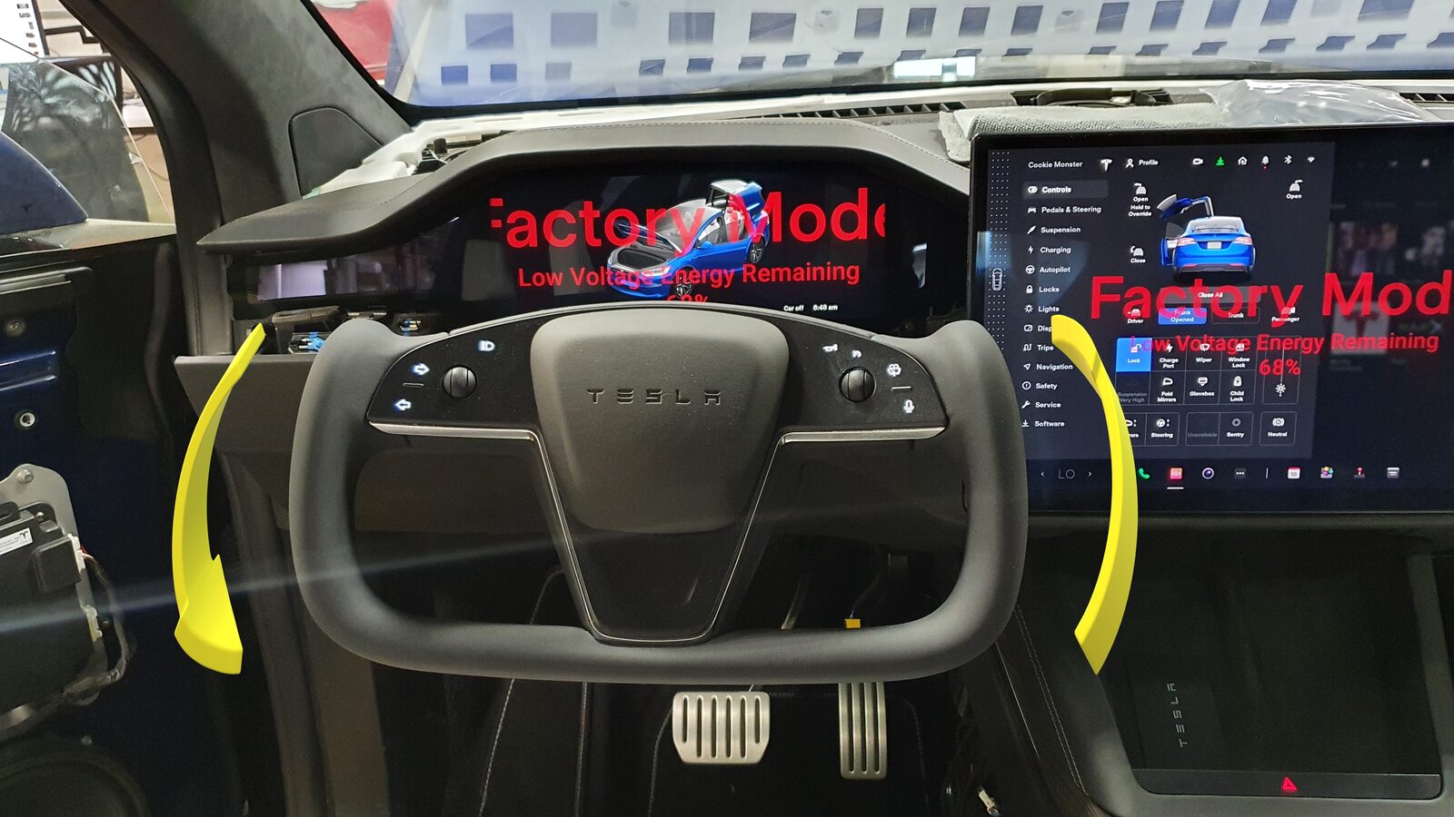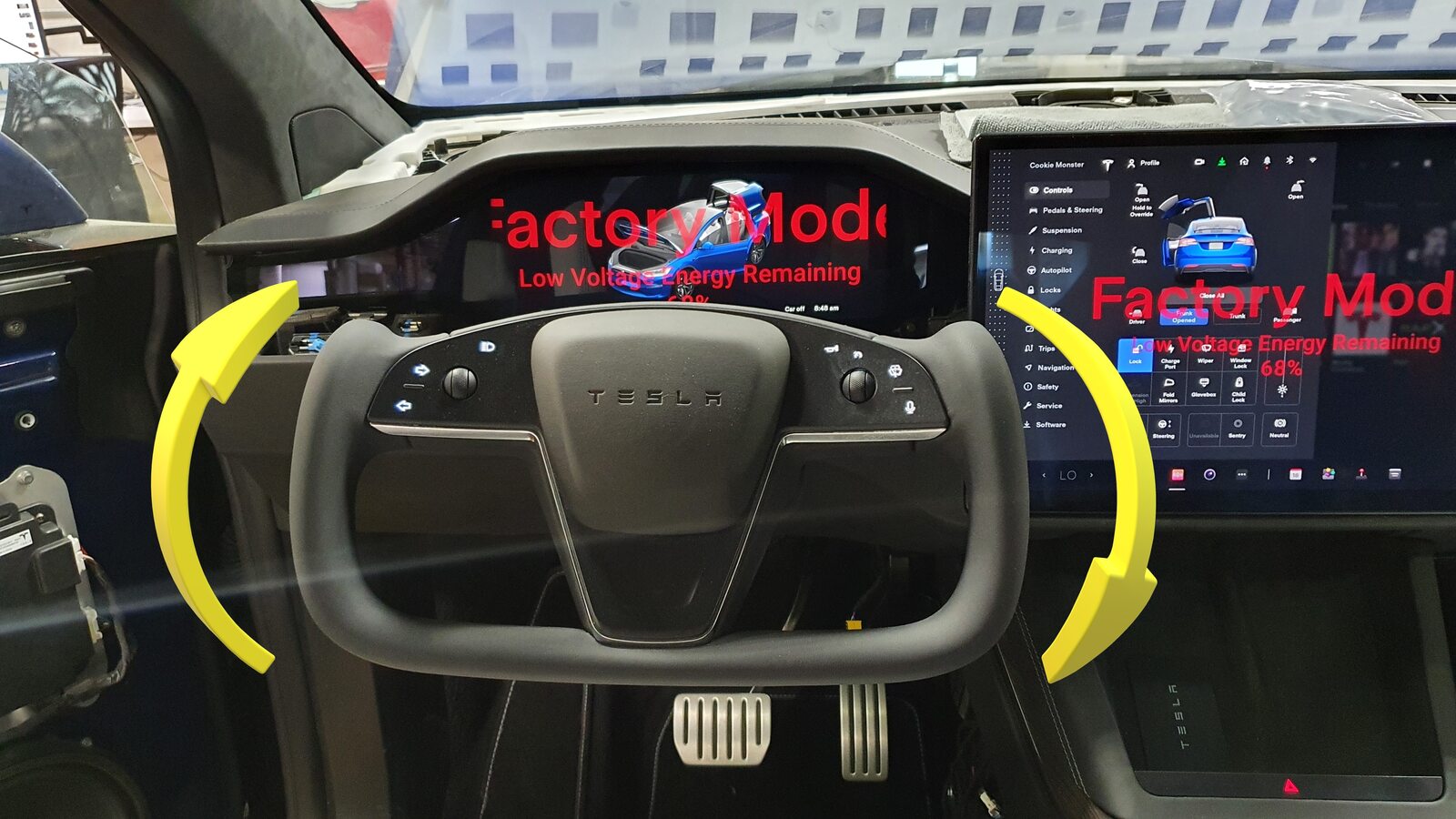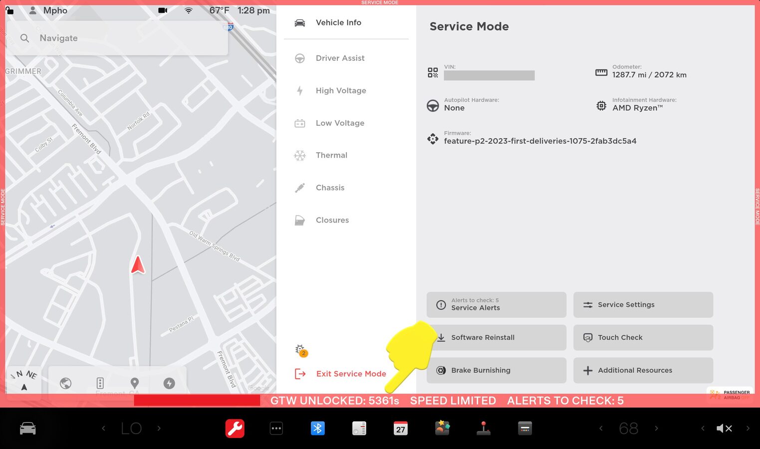 NoteAfter vehicle has been put into "Service Mode", place keycard on center console to turn on drive rails, hold down the brake pedal, while keep pressing right hand signal button simultaneously for at least 10 seconds, "GTW UNLOCKING" should pop up on the UI right next to the VIN during these 10 seconds, once gateway is unlocked "GTW UNLOCKED 5400" will be displayed on the UI next to the VIN, the gateway will remain unlocked for 90 minutes, follow steps on Toolbox article #5582900 for any additional information