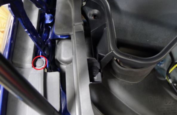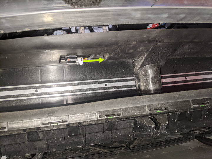 Note1x connectors, Engage locking tab, Located behind RH wheel arch liner