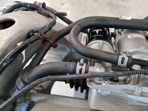 - Release the clips (x4) that attach the outlet hose to the drive unit, and then remove the outlet hose assembly.