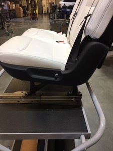 Lift the front of mid 2nd row panel toward the rear of the vehicle, then pull the floor panel out of the vehicle