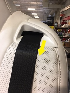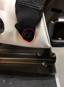 - Remove leather and cushion from seat to gain access to seat belt retractor