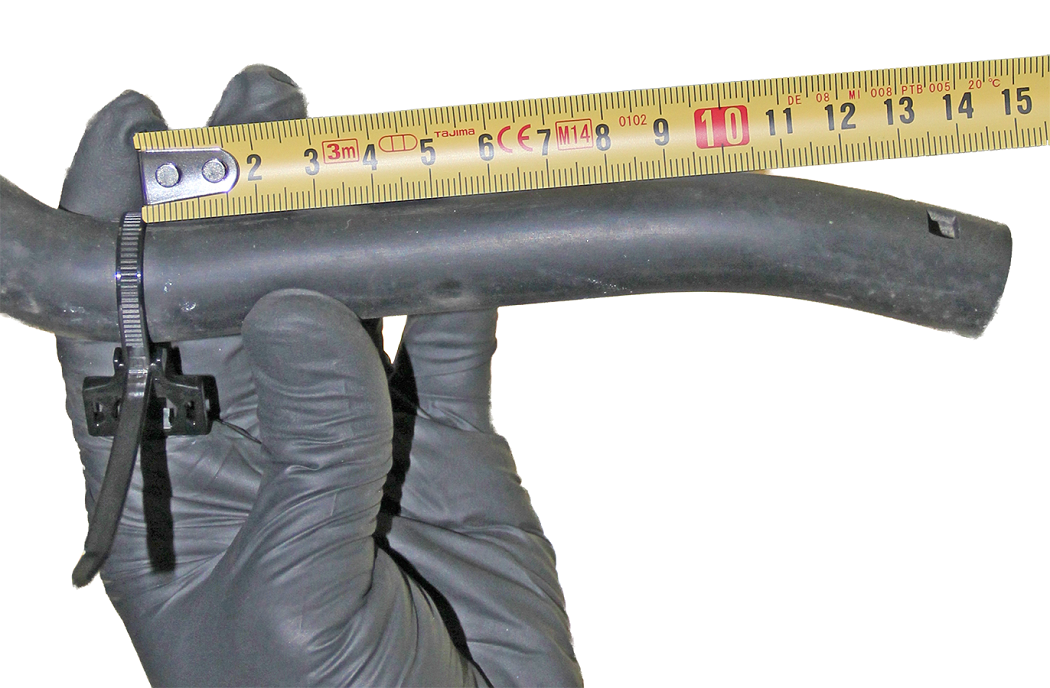 - Install a new cable tie clip on the drain hose approximately 150 mm from the outlet. Remove any excess tie.