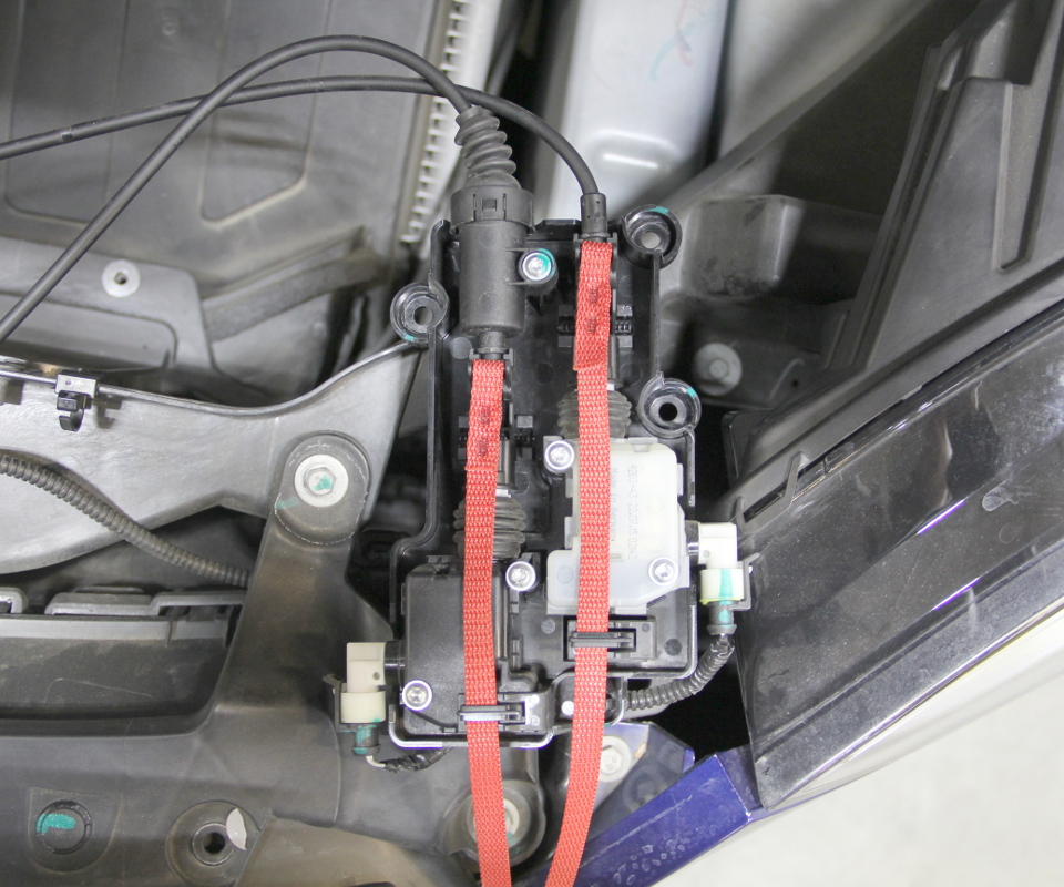 - Remove the bolts (x3) that secure the actuator assembly bracket to the front end module (torque 10 Nm).