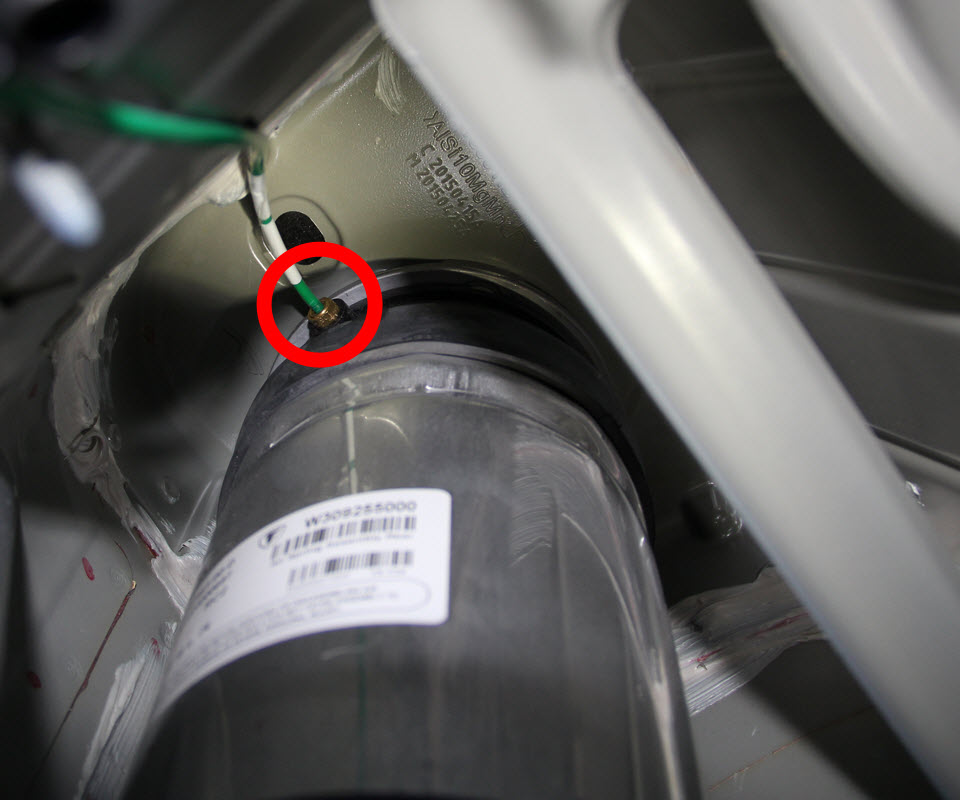 - Release the clips that secure the air spring module lines (green and brown) to the rear RH wheel arch.