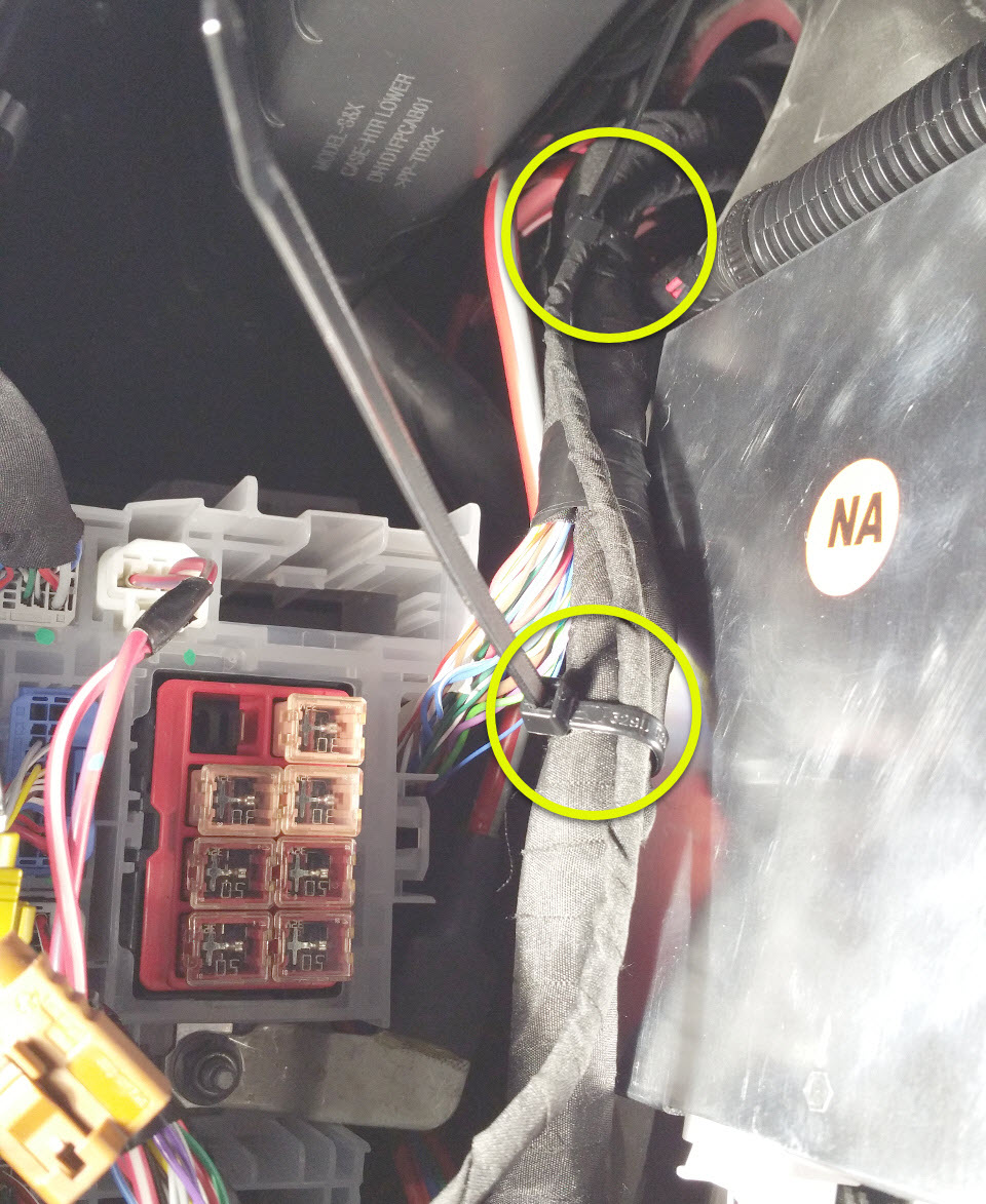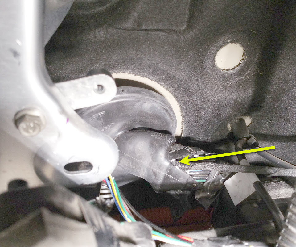 - Route the LH repeater coax cable along the frunk electrical harness, along the old coax cable, and out the side repeater hole in the LH fender.