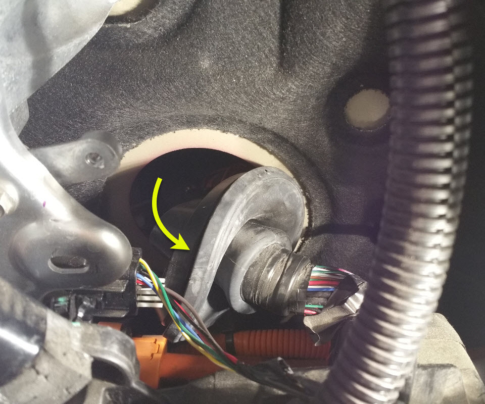 - Apply tape to attach the narrow end of the dust boot to the frunk electrical harness, and then install the dust boot into the bulkhead.