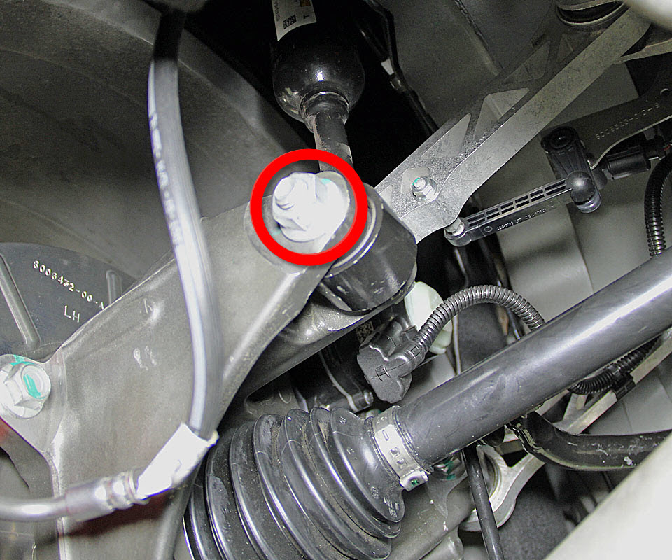 - Release the bolt that secures the toe link to the knuckle (torque 130 Nm).