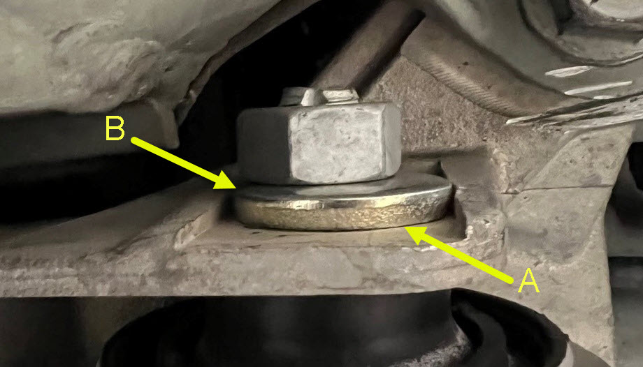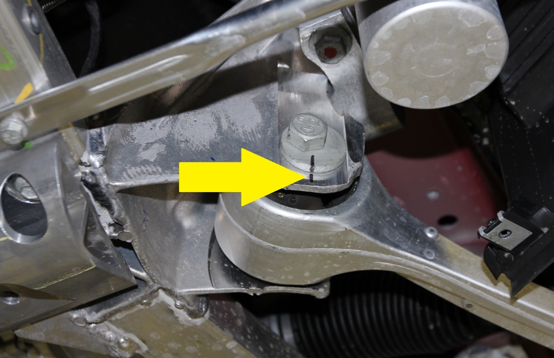 - Use a paint pen to apply a witness line to the cam bolt and front subframe, so that the same mounting position can be achieved at installation.