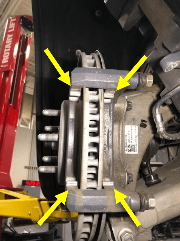NoteIf performing this procedure as a Mobile Service, chock opposing wheels to prevent rollaway, service the front calipers, and then service the rear calipers.