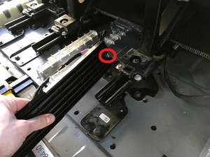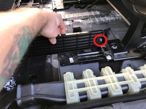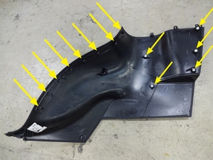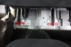 NoteLift front of panel up to release clips, While lifting up, need to release the rear sliding plates from the seat and slide them all the way back, Once free, lift rear of panel and slide out from behind seats, Use caution since floor panel can damage HVAC ducts