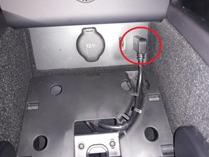- Open the center console phone dock door, and then disconnect the wireless charger USB electrical connector and release the cable from the clips.