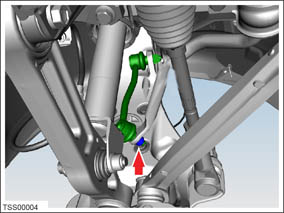 - Install the LH stabilizer bar end link into the stabilizer bar, and then install a new nut to attach the end link to the stabilizer bar (torque 70 Nm).