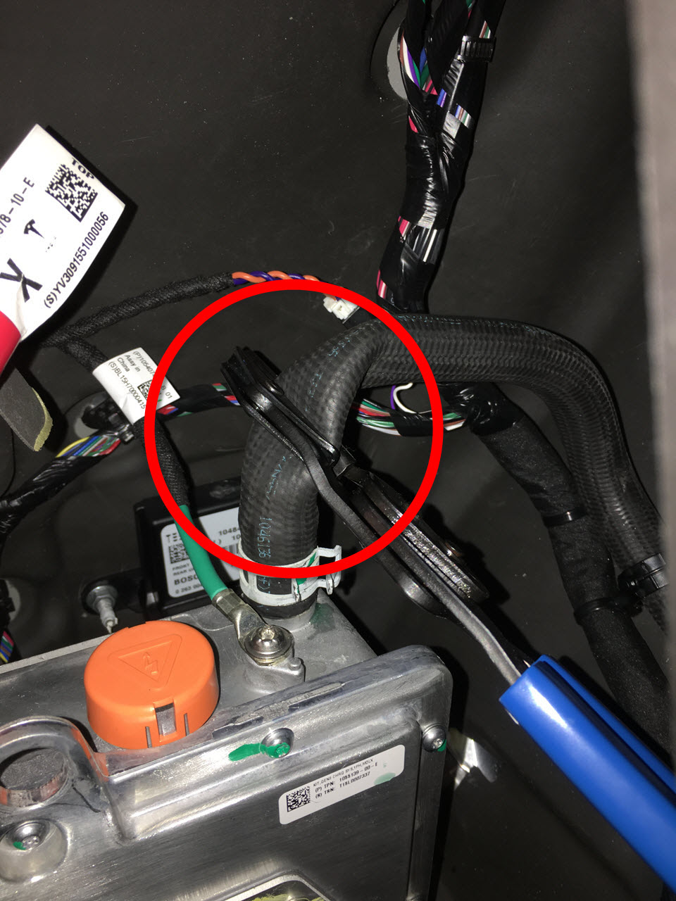 - Install new bolt bolt that attaches the HV harness into the charge port (torque 6 Nm).