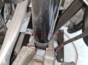 - Release the nut and bolt that secure the damper to the knuckle (torque 140 Nm).