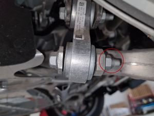 Note1x nut, 18mm, 130 Nm, 1x bolt, 18mm, 130 Nm, Do not remove the nut or bolt.