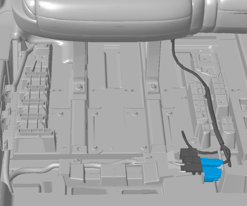 - Release the clip that secures the harness to the RH floor panel bracket.