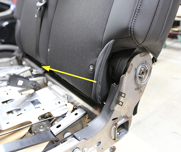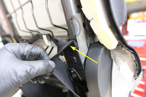 - Release the J-hook attaching the seat back upholstery to the seat, and then lift up the seat upholstery.