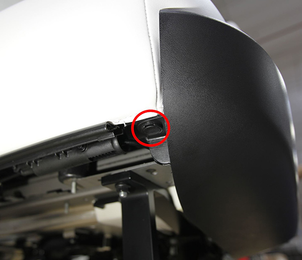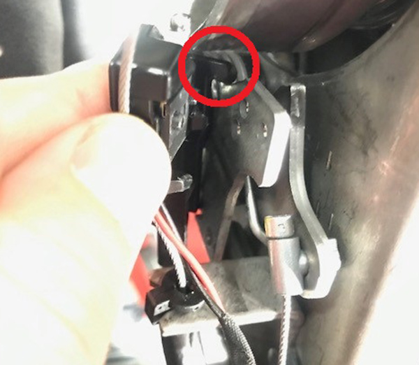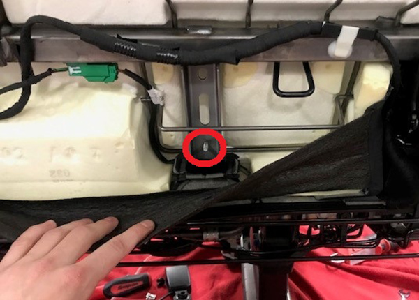 - Use a T20 socket to remove the screw that attaches the easy entry microswitch bracket to the seat frame (torque 3.5 Nm).