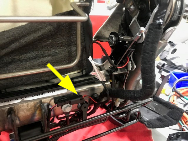 - Disconnect the seat cushion electrical connectors (x4; 2 gray, 2 black). Release the black connectors from the seat frame.