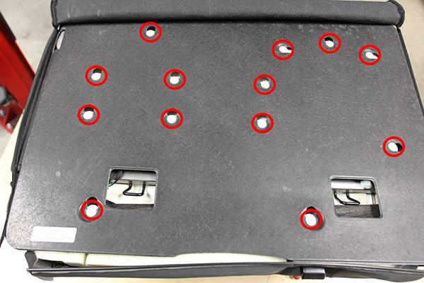 - Use a clip prytool to release the clips (x13) that attach the seat back board, and then remove the back board from the seat.