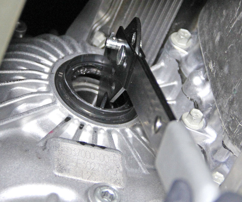 - Use the seal puller or an equivalent tool to remove the seal from the drive unit.