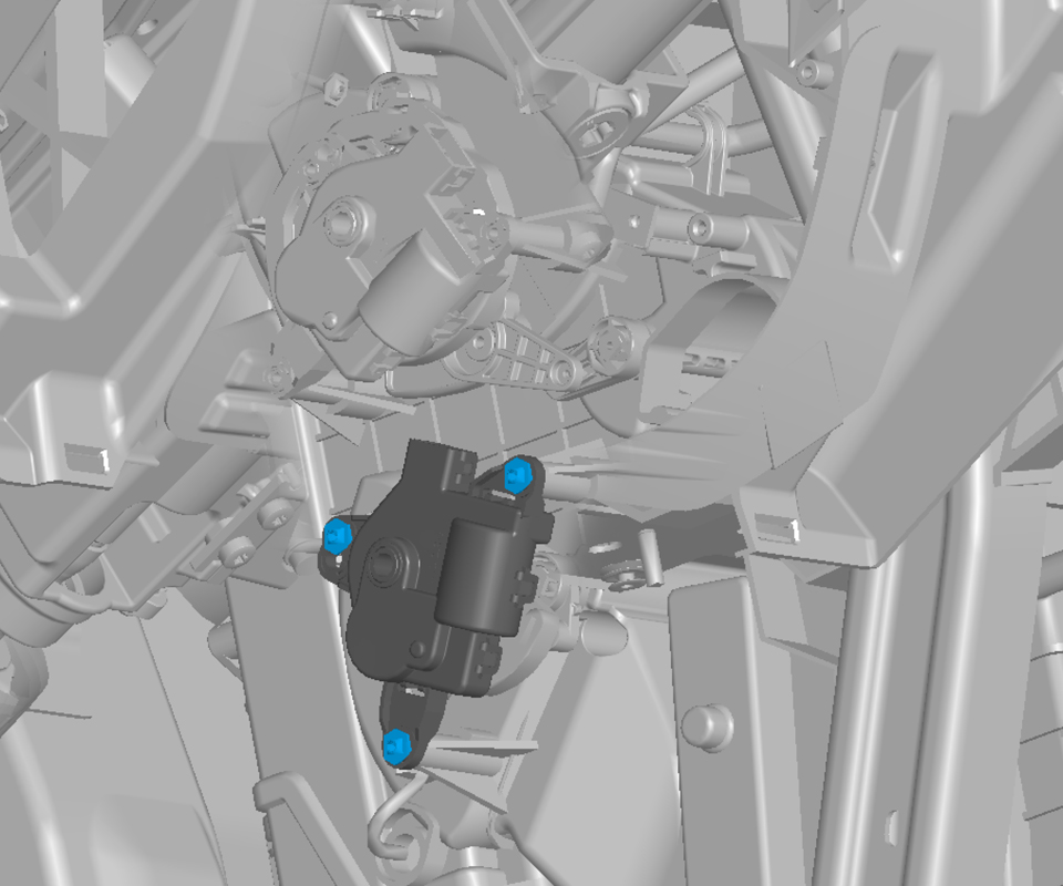 - Remove the screws (x3) that attach the driver side temperature actuator to the front HVAC assembly, and then remove the actuator from the vehicle.