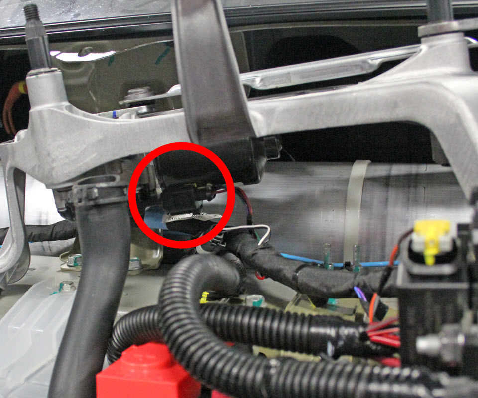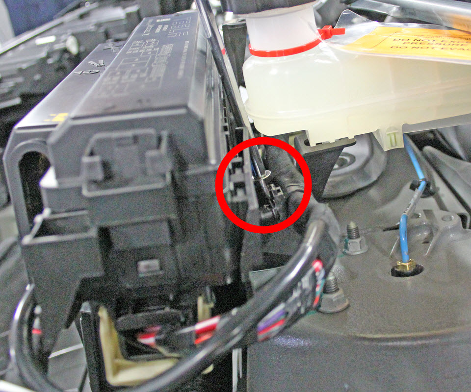 - Unclip the fusebox harness from the 12V battery tiedown.