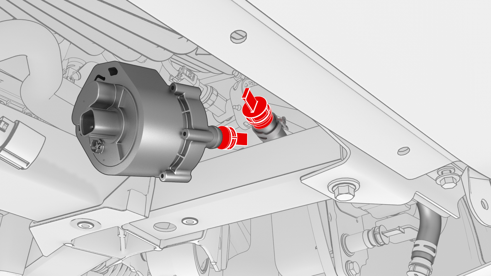 - Disconnect the battery pump 1 electrical connector.