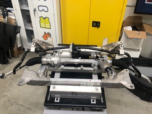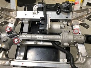 Install the bolts (x3) that attach the steering gear assembly to the front